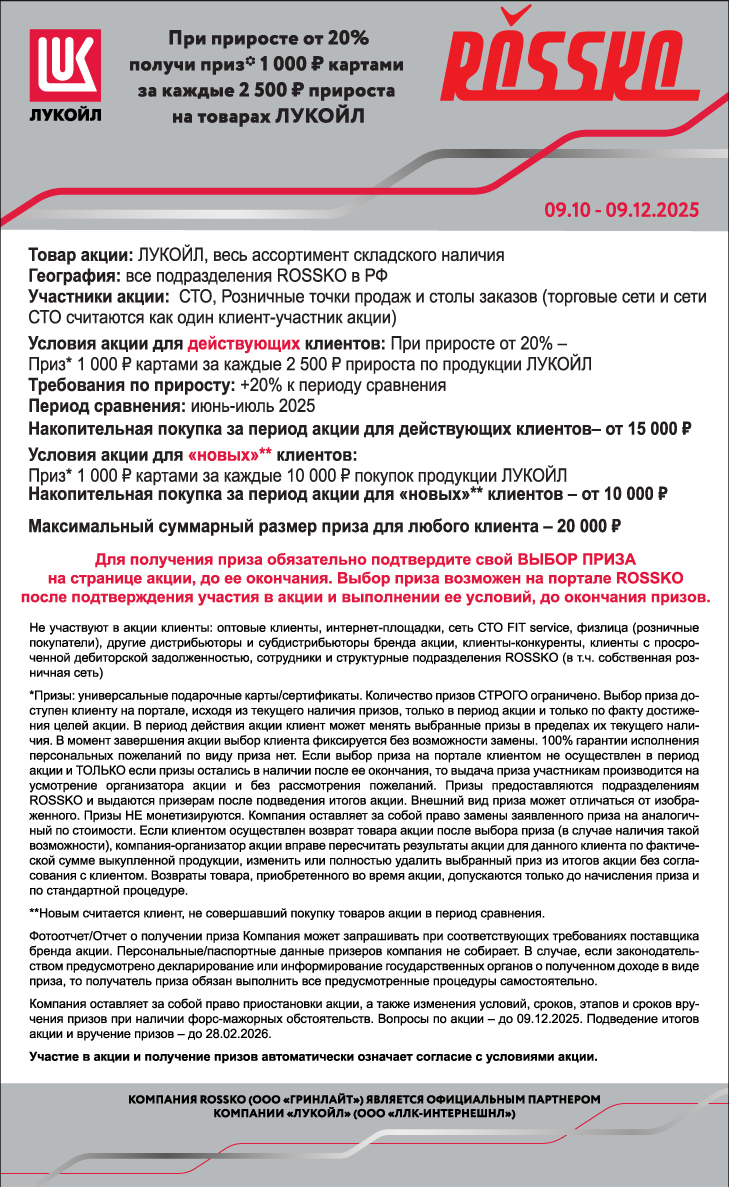 09.10 - 09.12.2025 «При приросте от 20% – приз* 1000₽ картами за каждые 2500₽ прироста на товарах ЛУКОЙЛ»